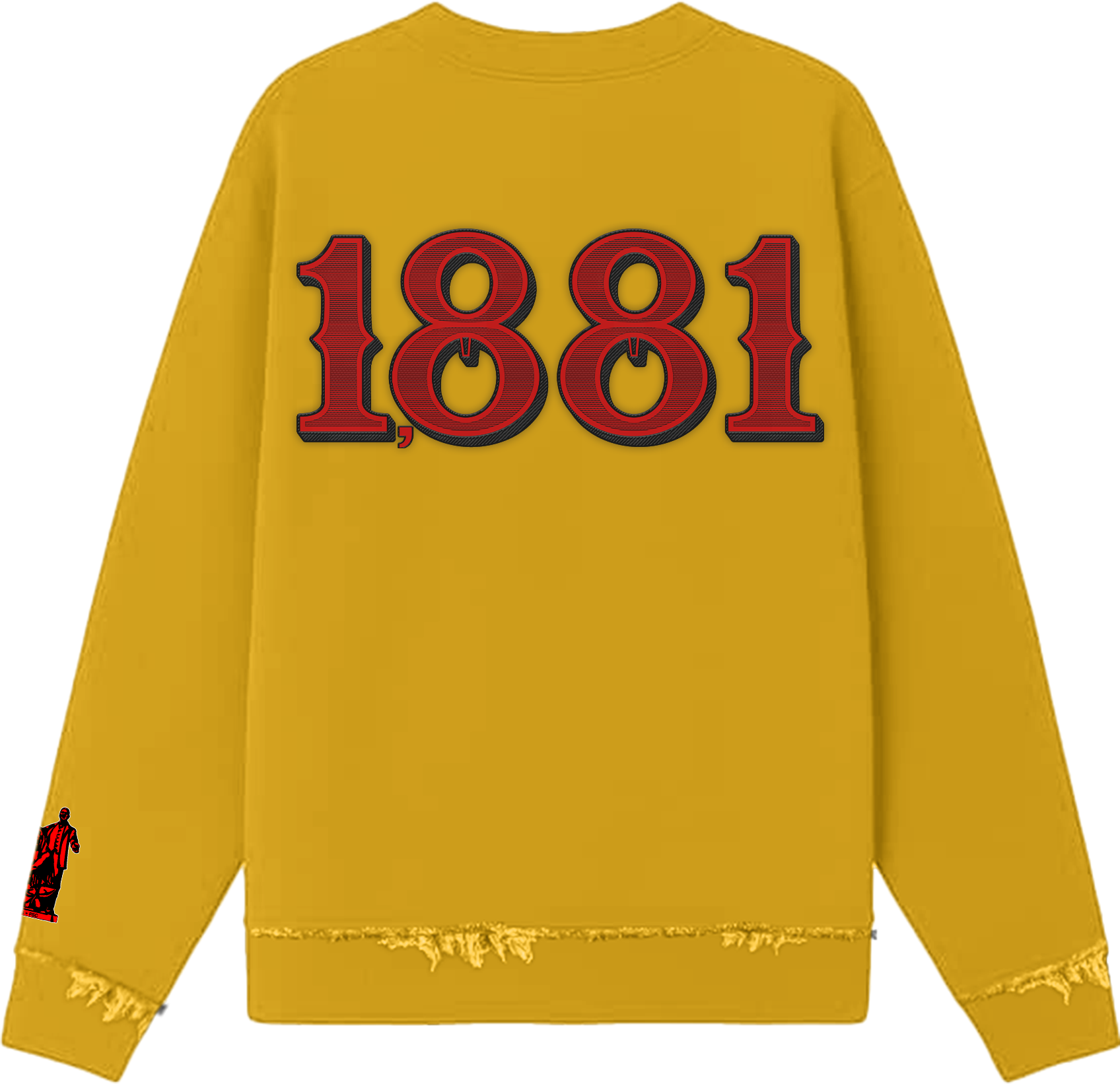 Featuring a bold, arched “TU,$KE,GEE” embroidery across the chest and the founding year “1,881” on the back in large varsity-style red lettering, this heavyweight fleece delivers vintage energy with modern luxury. The raw distressed hem adds streetwear edge, while the left wrist is marked with a powerful embroidered image of the "Lifting the Veil of Ignorance" statue, a visual symbol of TU’s ongoing mission.
